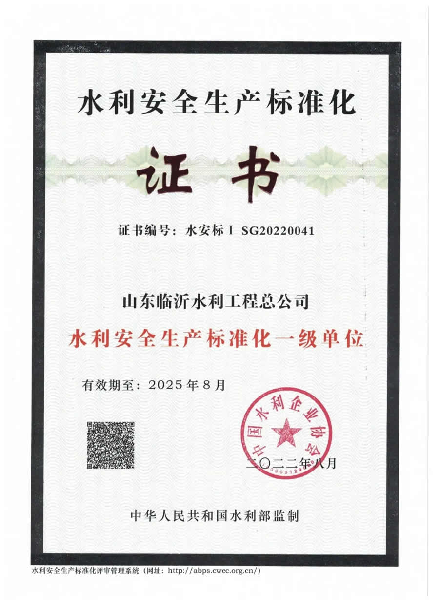 我公司也被授予全國優(yōu)秀水利企業(yè)、水利建設(shè)市場(chǎng)主體信用評(píng)價(jià)AAA企業(yè)、山東省勞動(dòng)關(guān)系和諧企業(yè)、臨沂市市長(zhǎng)質(zhì)量獎(jiǎng)、臨沂市建筑業(yè)骨干企業(yè)等榮譽(yù)稱號(hào),是山東省水利工程建設(shè)的排頭兵。成績(jī)屬于過去,拼搏鑄就未來。臨沂水總愿與社會(huì)各界朋友真誠合作,攜手并進(jìn),共創(chuàng)輝煌!