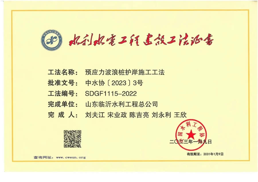 在生產(chǎn)經(jīng)營中,公司始終堅(jiān)持“精心組織、質(zhì)量第一;顧客至上、服務(wù)第一;追求卓越、改進(jìn)第一”的質(zhì)量方針,以質(zhì)量求生存、以效益促發(fā)展,不斷加強(qiáng)技術(shù)創(chuàng)新和質(zhì)量管理。目前擁有水利部水利水電工程建設(shè)工法6項(xiàng),國家發(fā)明專利3項(xiàng),實(shí)用新型專利46項(xiàng),全國水利行業(yè)優(yōu)秀質(zhì)量管理小組QC成果一等獎(jiǎng)20余項(xiàng),公司參與完成的“河谷場(chǎng)地地震動(dòng)輸入方法及工程抗震關(guān)鍵技術(shù)”(J-22102-2-02)項(xiàng)目獲得2019年度國家科學(xué)技術(shù)進(jìn)步二等獎(jiǎng)。